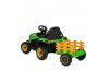 Сидіння має ергономічну форму та підтримує правильну посадку дитини, дозволяючи комфортно керувати трактором навіть під час тривалих поїздок. Кермо реагує точно й передбачувано, полегшуючи маневрування та зміну напрямку руху. Великі колеса з добрим зчепленням із поверхнею гарантують стабільність на асфальті, плитці та ґрунті.