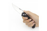 Щоб відкрити ніж, потрібно підчепити клинок за наскрізний отвір, що однаково зручно виконувати як правою, так і лівою рукою. Сталеві підшипники в осьовому вузлі роблять хід леза простим та швидким.