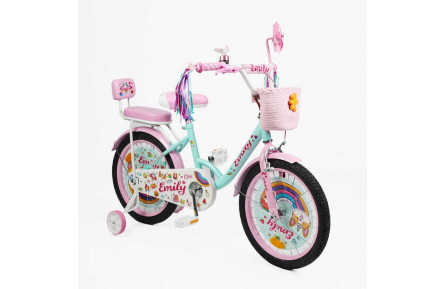 Велосипед 2-х колісний Corso Emily ML-40215 18" бірюзово-рожевий, кошик, прикраси, ручне гальмо, дзвіночок, додаткові колеса
