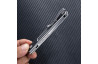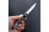Відкривання леза відбувається плавно й передбачувано, а надійний замок утримує клинок у робочому положенні без люфтів, забезпечуючи безпечне користування. Рукоять виконана з міцного легкого матеріалу, стійкого до зношування та вологи. Завдяки продуманій формі ніж впевнено лежить у руці та дозволяє працювати тривалий час без дискомфорту. Матове чорне покриття робить модель універсальною і непомітною, що підходить для EDC-носіння.